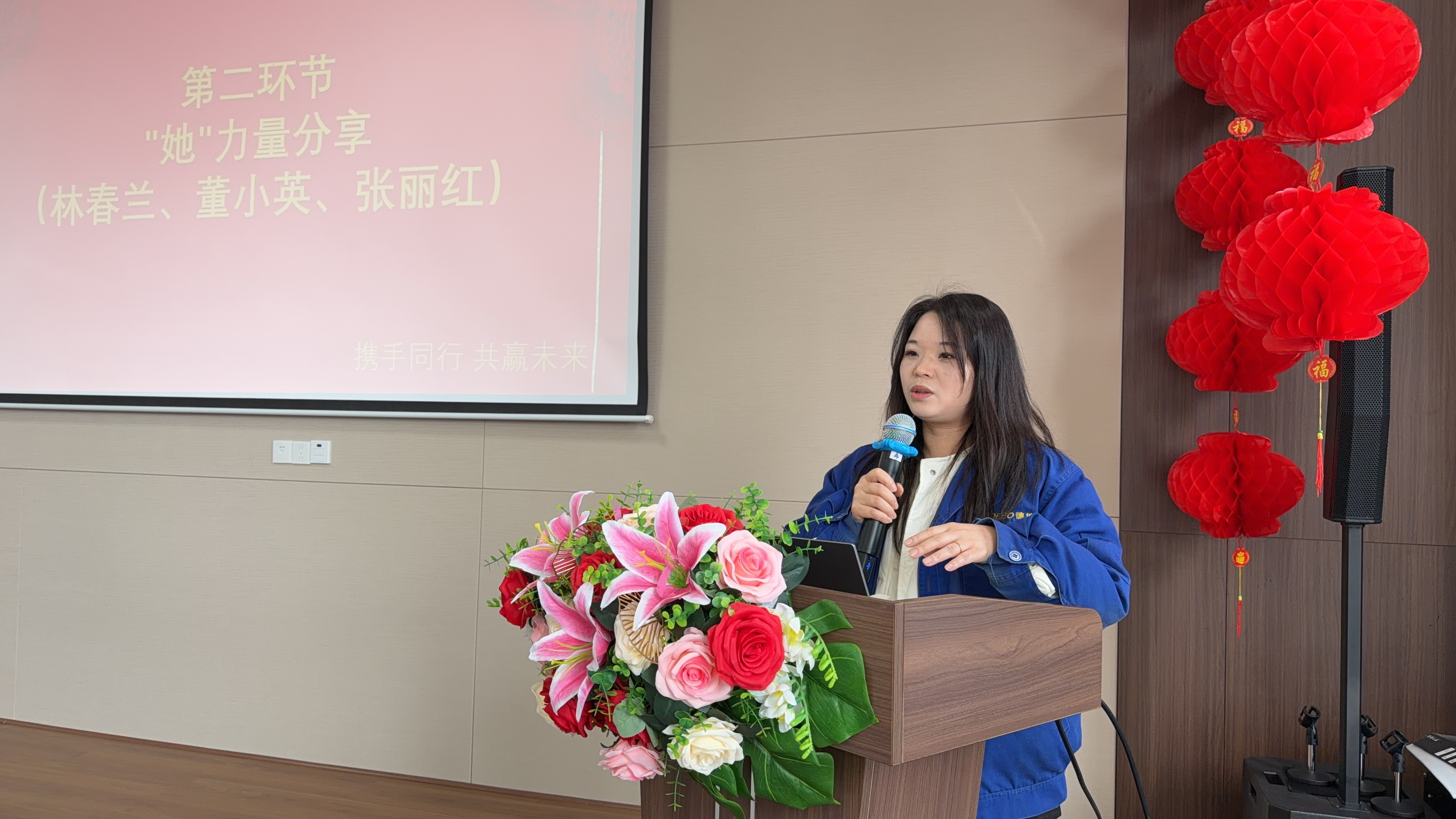 在"她故事"分享环节,三位女职工代表依次登台,以真挚话语传递德博女性的力量与温度。代表们的发言引发全场共鸣,彰显了德博科技"以人为本"管理理念的深厚土壤。